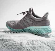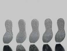 Die Beispiele zeigen auch, dass man die Elastizität der Sohlen durch die Shorehärte der Materialien (ggf. von mehreren schichtweise angeordneten), aber auch durch Konstruktion einer Sohlenstruktur (Abb. 16) oder durch eine Kombination von beidem erzielen kann. Eine Sonderentwicklung ist das 3‑D-Drucken carbonverstärkter Bauteile, z. B. als Sohle (Abb. 17). Dazu wird ein 3‑D-Drucker mit einer mitlaufenden Kohlefaser verwendet (Hersteller: Markforged), die in die zunächst gedruckte Polymerschicht eingebracht wird. Abbildung 17 zeigt unterschiedliche Konstruktionen.