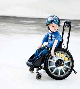 Robin ist nun sechs Jahre alt, und sein XS ist immer noch im Einsatz – auch wenn Stehen und Gehen eine wichtige Rolle spielen, ist der Rollstuhl einfach schneller, und der Bewegungsdrang kann spielend ausgelebt werden (Abb. 3).