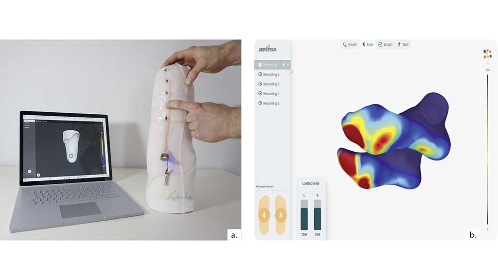 Eine zusätzliche Sensorikschicht, wie sie z. B. die Sendance GmbH aus Linz integriert, kann zur dauerhaften Überprüfung des Sitzes und der Funktion des Hilfsmittels oder auch zur zeitlich begrenzten Probemessung im Sanitätshaus genutzt werden. Die smarte Sensorikschicht unterstützt hier die Expertise des Orthopädietechnikers, die auf seiner Erfahrung und dem Empfinden des Patienten beruht, mit quantitativen und patientenspezifischen Daten3. Die Sensorik kann auch fehlendes oder gestörtes Empfinden wieder spürbar machen. Anstelle natürlicher Warnsignale des Körpers kann diese Messschicht über die gesamte Lebensdauer hinweg dem kundigen Anwender des Hilfsmittels Hinweise und Warnungen dazu geben: