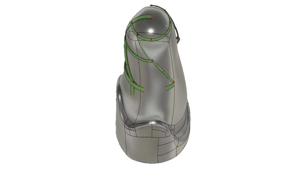 Die Sensorikschicht geht diesen Digitalisierungsschritt gemeinsam mit der Additiven Fertigung. Sie füllt durch einen konstanten Datenstrom das digitale Modell mit Daten aus dem echten Leben und erschafft so Stück für Stück eine genauere Abbildung der Notwendigkeiten für den Träger (siehe auch digitaler Zwilling, ein virtuelles Modell realer Orthopädieprodukte zur Analyse und Optimierung11. Ein Beispiel für die operative Ausführung der digitalen Designphilosophie ist in 3D-Modellen, die gewünschte Messposition zu vermerken und die Sensorik auf dieser Basis zu erstellen und zu fertigen (Abb. 4). Dadurch kann das digitale Modell, welches wir sowieso schon haben, genutzt werden, um auch die Sensorik individuell für das Produkt anzupassen und als weitere Schicht aufzutragen.