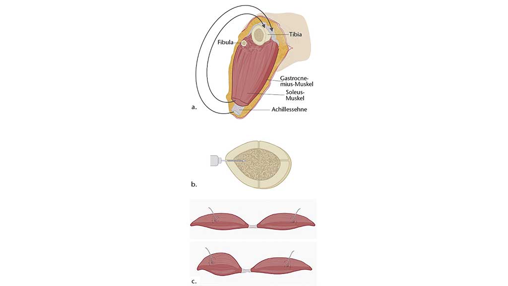 Das bisherige Vorgehen bei einer transtibialen Amputation berücksichtigt nicht oder nur unvollständig die anatomische und neuromechanische Kopplung von Agonisten und Antagonisten (Abb. 1a, b).