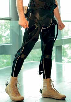 Neben diesen relativ schweren Systemen gibt es noch einen zweiten Entwicklungstrend: Leichte und portable sogenannte Exosuits (Abb. 7) ergänzen einzelne Gelenke am Bein durch eine Aktuatorik. Dabei werden die Motoren in einer Art Gürteltasche an der Hüfte angebracht. Bowdenzüge, vergleichbar mit denen einer Fahrradbremse, übertragen die Bewegung der Motoren auf die Gelenke. Durch die Verwendung von auf Textilien basierenden Schnittstellen mit dem Menschen wird kein zusätzliches schweres Stützsystem zur Führung der Bewegung benötigt. Dies schränkt die Beweglichkeit im Alltag weniger ein. Zusätzlich wird das Gewicht am Bein reduziert, was den Trageaufwand für den Anwender herabsetzt. Exosuits können zukünftig zur Rehabilitation und auch zur alltäglichen Unterstützung von Nutzergruppen mit Einschränkungen im Bereich der Atmung, der Muskulatur oder des Herz-Kreislauf-Systems eingesetzt werden. Ein Einsatz bei neurologischen Störungen wie Lähmungen ist denkbar. Neben diesen Patientengruppen können solche Gangassistenzsysteme auch die Mobilität von Senioren erhöhen und damit die Selbstständigkeit dieser Zielgruppe fördern. Wie bei einem Elektrofahrrad kann der Fortbewegungsaufwand reduziert werden 20 Anwendungen für jüngere Nutzer sind im Freizeitbereich denkbar.