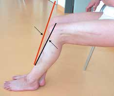 Bei einer alten fixierten hinteren Schublade nach Trauma wird die Orthese in aller Regel zum Aufdehnen der geschrumpften Gelenkkapsel eingesetzt (Abb. 11a u. b). Durch das fehlende hintere Kreuzband ist die physiologische Stellung des Unterschenkels nicht mehr gegeben, die Tibia rutscht nach dorsal, und über einen langen Zeitraum schrumpft die Gelenkkapsel und fixiert den Unterschenkel in einer Fehlstellung. Erst wenn diese über einen Zeitraum von drei bis sechs Monaten gedehnt ist, kann die Rekonstruktion des hinteren Kreuzbandes erfolgen. Im Anschluss wird mittels PCL-Version über ein gelenknahes stufenlos einstellbares breites Klettband im proximalen, dorsalseitigen Anteil des Unterschenkels die hintere Schublade vermieden. So kann der Tibiavorschub gut eingestellt werden (Abb. 12). Handelt es sich um große Volumina der unteren Extremität und eine stark konische Beinform, kann ein Fußteil aus kosmetischen Gründen auch medial angebracht werden.