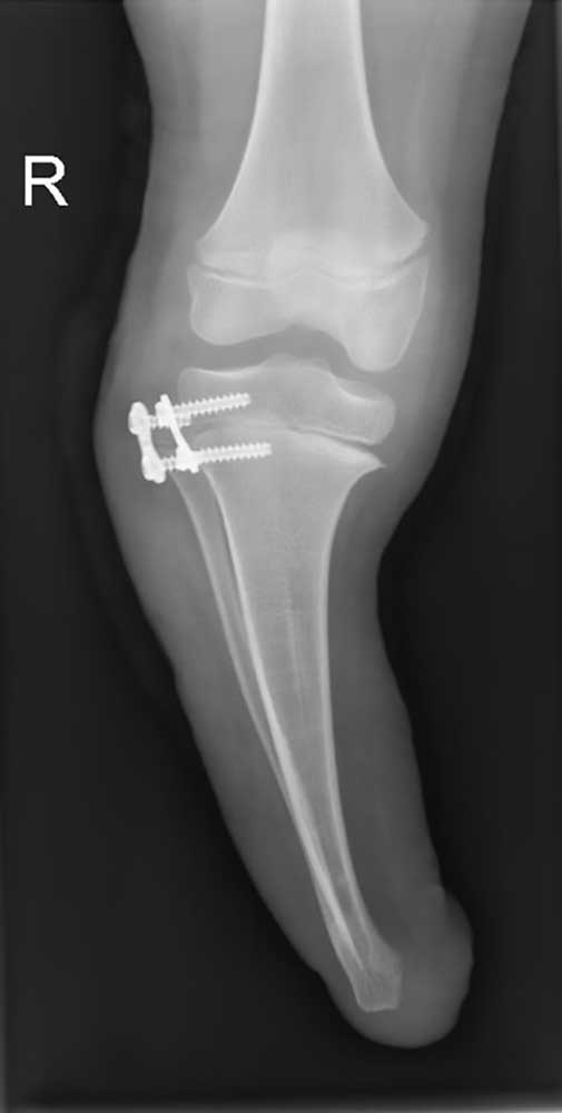 - Die Länge des Stumpfes kann beim wachsenden Kind relativ einfach durch eine sorgfältig geplante Epiphysiodese kontrolliert werden; bei ausgewachsenen Patienten ist dagegen eine Verkürzungsosteotomie möglich. Als Beispiel ist die Syme-Amputation zu nennen, bei der es sich um eine echte Exartikulation handelt. Das Verfahren kann bei vielen Gliedmaßendefekten im Kindesalter – einschließlich Längsdefekten wie den verschiedenen Arten von Fibula- und Tibia-Hemimelien – angewandt werden. Durch die Syme-Exartikulation kann bei Kindern ein endbelastbarer Stumpf mit sehr gutem funktionellem Ergebnis geschaffen werden, bei dem auch im Langzeitverlauf nicht mit größeren Komplikationen zu rechnen ist. Dennoch bleibt anzumerken, dass die Syme-Amputation im Kindesalter de facto ein eher seltener Eingriff ist.