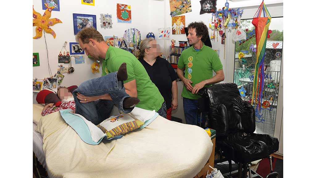 Auf Grundlage des medizinischen Befundes durch Ärzte und Therapeuten macht sich der betreuende Orthopädie-Techniker vor der Abnahme des Abdruckes grundsätzlich einen eigenen Eindruck vom Körperzustand und dem Grad der Beweglichkeit des Patienten. Er untersucht den Patienten gründlich und besucht ihn im häuslichen Umfeld, um die gewohnte Umgebung und etwaige weitere Versorgungsgeräte der Patienten zu erfassen (Abb. 1).