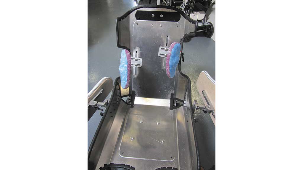 Die Techniker fertigen im Anschluss den Außenkorpus für die Sitzschalenversorgung per Hand in der Metallwerkstatt. Vorteil: Der Eigenbau unterstützt ein präzises auf den Körper und seine Anforderungen abgestimmtes Maß.