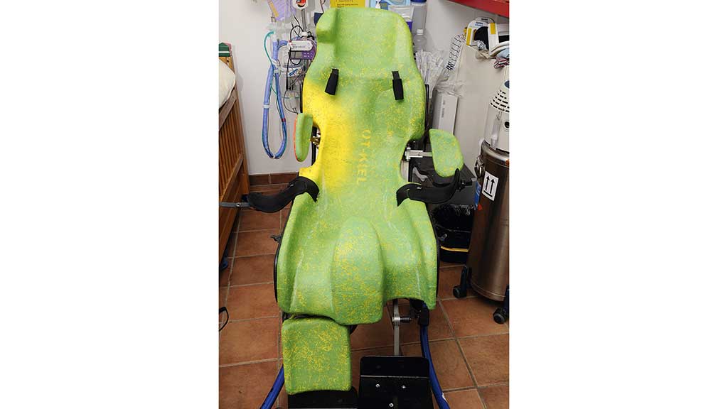 Danach erhält der Patient die Sitzschale zunächst ohne Bezug für eine 14-tägige Testphase. Vor der endgültigen Fertigstellung ist es wichtig, dass das Kind oder der Jugendliche alle alltäglichen Situationen mit der Sitzschale durchlebt und für gut befunden hat. Zugleich sind die Rückmeldungen der Menschen aus dem direkten Umfeld wichtig: Das Hilfsmittel muss die Familie, die Pflegefachkräfte und Therapeuten in ihrem Umgang mit dem Patienten bestmöglich unterstützen.