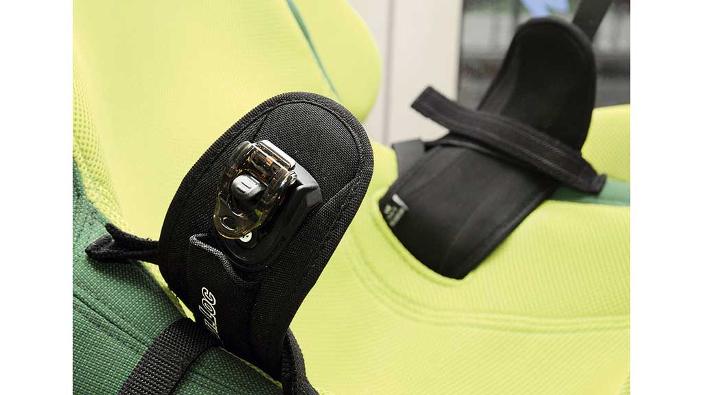 Um das Handling für die Familien oder Pflegekräfte einfach zu gestalten, sollten die Bezüge immer einteilig und bevorzugt mit Klettverschlüssen an der Sitzschale befestigt werden. So lassen sie sich problemlos abziehen und waschen, ohne dass weitere Anbauteile demontiert werden müssen. Zudem sorgen Klettbänder an den Seitenteilen, in denen die Gurte vor dem Herüberheben des Kindes befestigt werden können, für mehr Sicherheit (Abb. 13).