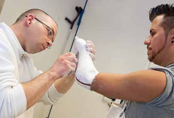 Die letzte Einweisung ging erneut auf das selbstständige An- und Ablegen und die technischen Details ein. Letztere sollten den Patienten in die Lage versetzen, die Prothese einerseits innerhalb des vorgesehenen Rahmens zu nutzen, andererseits Fehlerquellen zu erkennen. Durch den Wechsel des Schaftmaterials von Test- zu Definitivschaft waren zudem ergänzende Hinweise zu Reinigung, Wartung und Handhabung erforderlich.