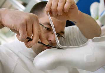 Der erste Probeschaft verifiziert gemäß Qualitätsstandard im Falle von Erstversorgungen die Passform und den Randverlauf sowie die Evaluation der Ansteuerungsareale. Die Materialauswahl sollte sich dabei am definitiven Schaftmaterial orientieren, da sich unterschiedliche Flexibilitäten jeweils anders auf die Weichteilaktivitäten des Stumpfes im Schaft in der simulierten Dynamik auswirken. Daher ermöglicht nur ein vergleichbar flexibler Probe-/Testschaft eine Aussage. Thermoplastische Materialien empfehlen sich in dieser Phase, da die Änderungs- und Anpassungsarbeiten daran technisch mit angemessenem Aufwand durchzuführen sind (Abb. 3).