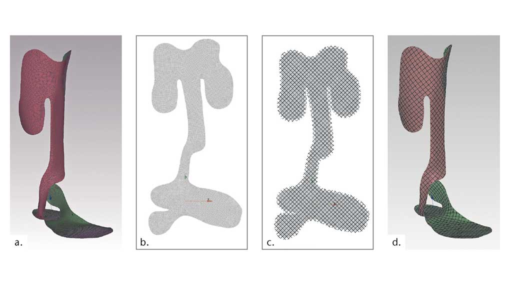Soll das volle Potenzial der TFP-Technologie für Orthesen anhand eines variabelaxialen bzw. beanspruchungsgerechten Faserlayouts ausgeschöpft werden, ist der Einsatz von Simulationssoftware auf der Basis einer Finite-Elemente-Analyse (FEA) notwendig. Die entsprechenden FEA-Softwaretools müssen dabei die Struktursimulation mit anisotropen Materialmodellen beherrschen; unter anderem ist dies mit „Ansys“, „Abaqus“ oder „Nastran“ möglich. In Kombination mit der Software „EDOstructure“ können so zum einen beanspruchungsgerechte Faserverläufe anhand von Hauptspannungstrajektorien erzeugt und zur weiteren Editierung mittels DXF-Format exportiert werden. Darüber hinaus besteht anschließend die Möglichkeit, auf sehr einfache Weise realitätsnahe Simulationsmodelle allein auf Basis der 2D-TFP-Musterdaten für die zuvor genannten FEA-Anwendungen zu generieren und mit diesen anschließend eine simulationstechnische Strukturbewertung durchzuführen 5.
