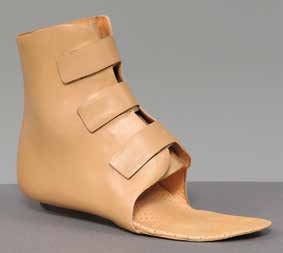 Dem Patienten wurde eine orthopädische Innenschuhorthese als Versorgung vorgeschlagen (Abb. 2). Um diese zu testen, wurde dem Patienten ein abnehmbares Soft-Cast-Stiefelchen (Abb. 3 und 4) mitgegeben. Dieses konnte sofort angefertigt werden und zeigte unmittelbar den gewünschten Erfolg, sodass die vorgeschlagene Versorgung nach kurzer Zeit ausgeführt werden konnte (Abb. 5).