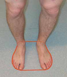 Unter dem Stichwort Sicherheit lassen sich viele Aspekte vereinen, jedoch ist einer davon hervorzuheben und muss primär berücksichtigt werden: die Wiederherstellung der Bodenunterstützungsfläche. Der Stand wäre nur einbeinig möglich, wenn die amputierte Seite nicht adäquat bis zum Boden verlängert und somit unterstützt wird. Auch im Zweibeinstand ist es günstig, den Körperschwerpunkt über einer großen Fläche austarieren zu können (Abb. 2). Während des Ganges, im Einbeinstand, ist zum einen die Größe, zum anderen die Lage dieser Fläche relevant.