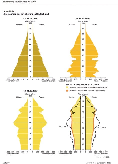 - Statistisches Bundesamt (Destatis). Bevölkerung Deutschlands bis 2060. 13. koordinierte Bevölkerungsvorausberechnung. Wiesbaden: Statistisches Bundesamt, 2015. https://www.destatis.de/DE/Publikationen/Thematisch/Bevoelkerung/VorausberechnungBevoelkerung/BevoelkerungDeutschland2060Presse5124204159004.pdf?__blob=publicationFile (Zugriff am 25.08.2015)