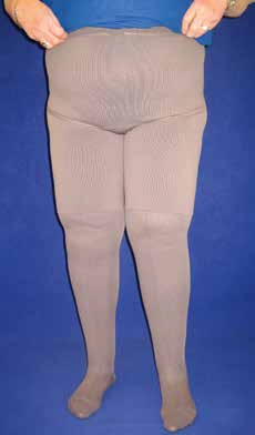 Um einer erneuten vermehrten Ödematisierung entgegenzuwirken und das Ergebnis der Phase 1 nachhaltig abzusichern, erhält der Patient am Übergang zu Phase 2 eine passgenaue Kompressionsbestrumpfung.