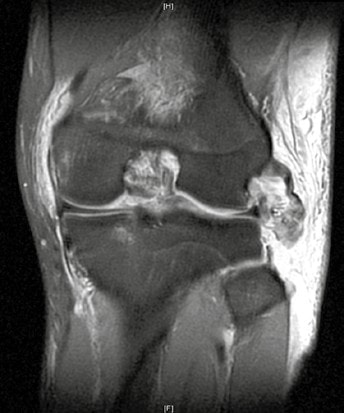 Die subakute Phase dauert bis zum Ende der dritten Woche, da in diesem Zeitraum die Heilungsvorgänge einsetzen. Therapeutisch stehen in dieser Phase die Rekonstruktion, Naht oder Augmentation der Bänder, des Streckapparates und ggf. die Therapie intraartikulärer Begleitverletzungen (Meniskus) im Vordergrund. Daher sollte unter diagnostischen Gesichtspunkten schnell eine MRT erfolgen, um diese Verletzungen näher zu charakterisieren. Die MRT erlaubt dabei nicht nur eine Klassifikation der Knieluxation, sondern auch eine detaillierte Beschreibung der Bandläsion (intraligamentär, Avulsionsverletzung) sowie der intraartikulären Begleitschäden (Abb. 3).