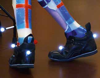 - Falls ein Patient Schuhe mit reflektierendem Material trägt (wie bei Sportschuhen, aber auch bei Kinderschuhen und Stabilschuhen heute allgemein üblich), müssen diese Teile abgedeckt werden, z. B. mit Kreppband, um Reflexionen und Markervertauschungen bei der Aufnahme zu vermeiden.