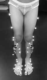 Die häufigsten Fehlerquellen beim Vergleich einer Ganganalyse mit Orthesen und/oder Schuhen mit dem Barfußgehen liegen wie dargestellt in den Berechnungen der Kinematik zur Bestimmung der Mittelpunkte und Bewegungsachsensysteme der Gelenke. Doch es gibt noch weitere Unterschiede in den Datenaufnahmen zwischen Barfußgehen und Gehen mit Beinorthesen. Mittels einer Oberflächen-Elektromyographie lässt sich die Aktivität einiger Muskeln der unteren Extremitäten bestimmen. Diese Muskeln, wie der M. tibialis anterior, der M. peroneus longus, der M. soleus oder der M. gastrocnemius, können dabei durch eine Unterschenkelorthese verdeckt sein. Eine Elektrodenplatzierung unter der Orthese ist jedoch in der Regel nicht möglich, und somit gibt es keinen Vergleich zwischen dem Gehen mit und ohne Orthese. Ein weiterer wichtiger Punkt betrifft die Ganggeschwindigkeit: Manche Patienten haben beim Gehen mit Orthesen und Schuhen eine höhere Ganggeschwindigkeit, wodurch wiederum die kinematischen, kinetischen und elektromyographischen Daten beeinflusst werden 6 7 8.