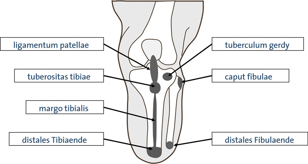 - Tibia mit abgerundeter ventraler Knochenkante (kurzer Stumpf)