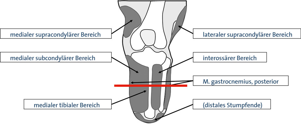 Um eine optimale Versorgung zu ermöglichen, muss zum einen von Seiten des Operateurs ein belastungsfähiger Stumpf gebildet werden, zum anderen muss der Versorger zahlreiche Anforderungen an die Prothesenversorgung berücksichtigen. Das Kompendium „Qualitätsstandard im Bereich Prothetik der unteren Extremität“ vermittelt zu beiden Bereichen einen umfangreichen Leitfaden 2. Für die Gestaltung eines funktionsfähigen Stumpfes werden dort folgende Empfehlungen formuliert: