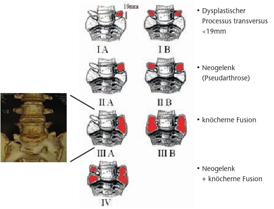 Bei der LSTV Castellvi II bis IV handelt es sich um eine knöcherne Fehlbildung, die sich zwangsläufig einer Korsettkorrektur widersetzt. Die Klassifikation Castellvi I mit nur Verbreiterung und/oder Dysplasie des Processus transversus (> 19 mm Breite) lässt eine Korrektur erwarten, ist jedoch wegen der diagnostischen Ungenauigkeit aufgrund einer Breitenangabe des Processus transversus für eine diagnostische Unschärfe verantwortlich. Auch die Differenzierung zwischen einer Fehlbildung Castellvi I und einer skoliosebedingten Kontaktfläche des Processus transversus mit dem Os sacrum bleibt unbeantwortet.