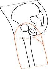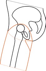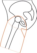 Bisweilen kann auch eine mediale Ramusumgreifung, wie sie aus der Oberschenkelprothetik bekannt ist, sinnvoll sein. In der Beinorthetik hat sie bei pathologisch bedingter geringer Überdachung des Hüftkopfes die Aufgabe, die Gefahr einer Hüftluxation zu minimieren. Da die Luxation des Hüftkopfes in der Regel mit einer Lateralisierung beginnt, lässt sich diese durch die Verklammerung zwischen medialer Ramusumgreifung und lateraler Femuranstützung verhindern. Einschränkend muss aber darauf hingewiesen werden, dass bei den betroffenen Patienten häufig auch der Ramus nur schwach ausgeprägt ist und eine Umgreifung daher relativ hoch ausgeführt werden muss, was der Toleranz nicht unbedingt förderlich ist. Alternativ lässt sich die Luxationsgefahr auch durch eine Lateralisierung der Unterstützungsfläche vermindern. Durch die Lateralisierung erhält der Vektor der Bodenreaktionskraft eine stärkere Neigung in Richtung Hüftpfanne und bewirkt dadurch eine höhere gelenkpressende Kraft, die der Luxation entgegenwirkt. Eine zu starke Lateralisierung führt aber zu einem stärkeren Seitpendeln des Oberkörpers, da der Gesamtkörperschwerpunkt auch weiter lateralisiert werden muss, um über die Unterstützungsfläche zu gelangen.