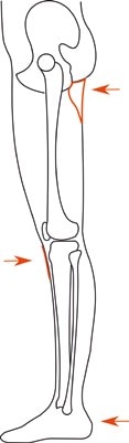 Des Weiteren kann die Orthese generell nur äußere Kräfte, also die direkten Bodenreaktionskräfte, übernehmen – die inneren Kräfte, also die muskuläre Reaktion der hüftübergreifenden Muskulatur, die zur Stabilisierung insbesondere des Einbeinstandes erforderlich ist, können nur indirekt beeinflusst werden. Somit ist selbst bei schwebendem Fuß in der Orthese eine gelenkpressende Kraft im Hüftgelenk vorhanden. Eine komplette Entlastung kann also nicht erreicht werden.