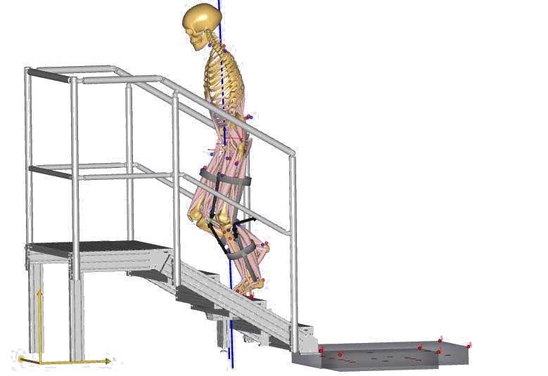 In diesem Beitrag wird die unterstützende Wirkung eines aktiven Elementes (motorgetriebener Seilzug) und zwei verschiedener passiver Elemente (Federn) eines Bewegungsunterstützungssystems (BUS) bei der Treppenüberwindung analysiert. Exemplarisch wird dabei der Treppenaufstieg eines Menschmodells, basierend auf gemessenen Daten, gemeinsam mit den Unterstützungselementen simuliert.