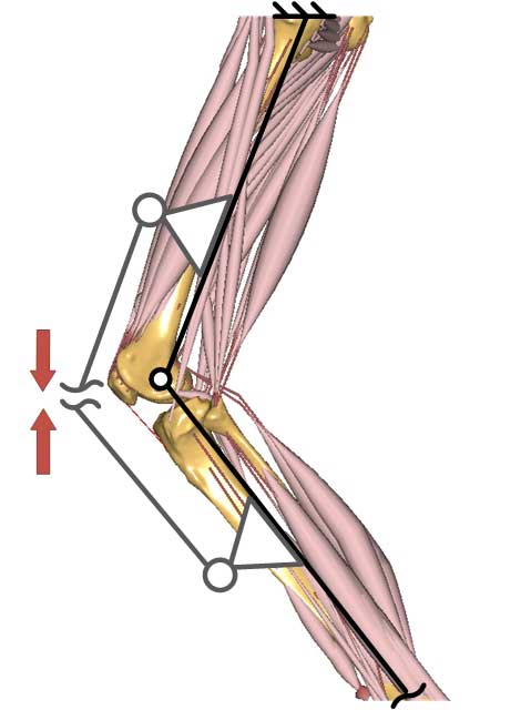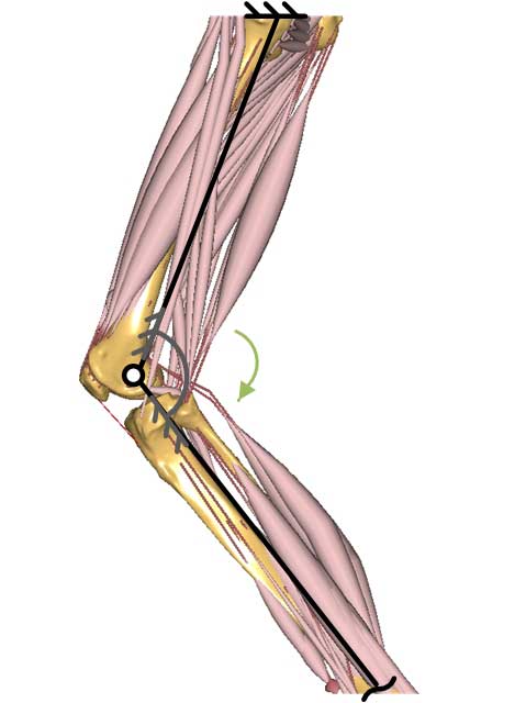 - aktiver Seilzug, der das Kniegelenk anterior überspannt.