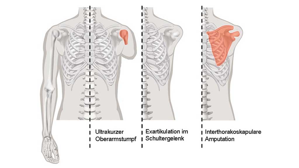 Anders als bei den Amputierten der unteren Extremität, verzichten viele Patienten mit Absetzungen im Bereich des Schultergürtels auf eine Prothesenversorgung, obwohl es auch hier verschiedene Möglichkeiten gibt 2 3 4 5.