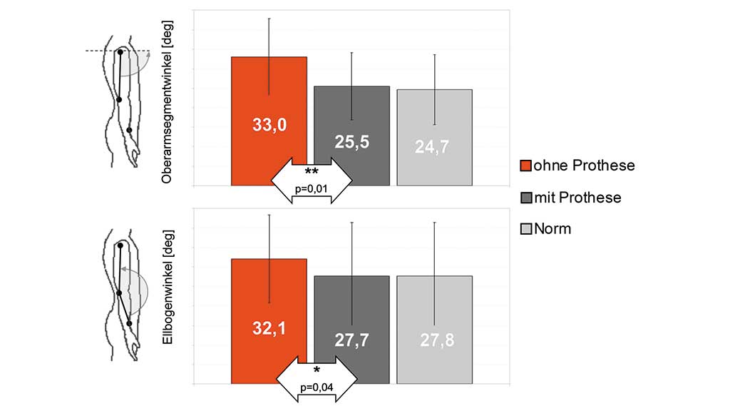 Die Ergebnisse machen deutlich, dass die dadurch entstehende Bewegung des Oberarmsegments auf der Prothesenseite im Gesamtmittel deutlich unter den gemessenen physiologischen Werten liegt. Dies ist auch bei Bierwirth 33 bestätigt.