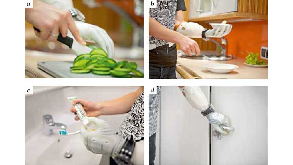 Zuletzt ist es das Anliegen des Wiener Labors, auch eine Art direkte Sensibilität zu erreichen. Zu diesem Zweck werden Hautnerven im Stumpfbereich entweder direkt an den Nervus medianus oder auf höherer Ebene an die Wurzel C6 angelagert. Nach erfolgter Regeneration empfindet der Patient in diesen Hautbereichen eindeutige Areale seiner Hand wie Daumen und Zeigefinger (Abb. 6a – d). Hier sind nicht nur eine vage Oberflächensensibilität, sondern auch spezifische Sinnesqualitäten wie Temperatur und Vibrationsempfindung und eine detaillierte taktile Sensibilität möglich. Damit gibt es eine neurobiologische Grundlage, um die Prothese sinnvoll zu sensibilisieren. Die neu gewonnene Empfindsamkeit am Stumpf kann mit unterschiedlichen Rückmeldesystemen gekoppelt werden. Auch hier wird jedoch ein aufwändiges „TechNeuroRehabilitations“-Programm notwendig sein, damit der Nutzer den Arm wie seinen eigenen wahrnehmen kann.