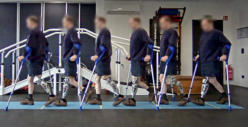 Das „VarioKnie“ befindet sich derzeitig in der laborbasierten Testphase (Abb. 6). In gesicherter Umgebung testen ausgewählte Menschen mit transfemoraler Amputation nach einem standardisierten Protokoll die Funktionen und Gebrauchsvorteile des „VarioKnies“, um so notwendiges Feedback für die weiteren Entwicklungsschritte bis hin zu einem späteren Produkt zu liefern. Dabei stellt die Testphase einen iterativen Prozess dar, sodass Optimierungen an der Konstruktion, dem Dämpfungssystem und der Software vorgenommen werden können.