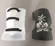 Beim Zuschnitt der Gießharzspange orientiert der Verfasser sich am Inlett und belässt sie rundherum ca. 15 mm kleiner, damit ein flexibler Randverlauf garantiert ist. Im Wirbelsäulenbereich werden zwei ca. 20 mm große Löcher gebohrt und sauber entgratet.