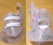 Der Orthotimer ist ein auf der Technologie der Identifikation mittels elektromagnetischer Wellen („Radio Frequency-Identification Technology“, RFID) basierender Chip, der in einem frei zu definierenden Zeitraum (optimal ist ein Abstand von 15 bis 20 Minuten) über die Umgebungstemperatur erfasst, ob ein Hilfsmittel am Körper getragen wird oder nicht. Über ein codiertes Auslesegerät und mittels spezieller Software kann dieser Chip mit einer Speicherkapazität von bis zu 6 Monaten im Rahmen regelmäßiger Verlaufskontrollen ausgelesen und so die Tragezeit ermittelt werden. Zum Einbau eines Orthotimers® in ein Hilfsmittel wird der mitgelieferte Dummy auf dem Positivmodell – am besten am Übergang zwischen Abdominaldruck und ventraler Spine – positioniert, was während des Tiefziehvorganges den nötigen Platz für den späteren Einbau des aktivierten Chips schafft (Abb. 1).