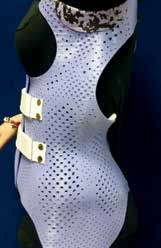 Par­al­lel dazu wird den Wün­schen der meist jun­gen Pati­en­ten nach­ge­kom­men, die der Auf­fas­sung sind, dass Kor­set­te anders aus­se­hen dür­fen als gewohnt. Denn solan­ge Kor­set­te wei­ter wie Kor­set­te aus­se­hen und die The­ra­pie­treue vom Selbst­wert­ge­fühl der Pati­en­ten ent­schei­dend abhängt, so lan­ge wird es wich­tig sein, dass das Selbst­bild mit einem Hilfs­mit­tel auf- und nicht abge­wer­tet wird 2. Mit den Wor­ten einer Pati­en­tin (13 Jah­re): „Das Kor­sett sieht so gut aus, das tra­ge ich über mei­nem T‑Shirt. Das sol­len die ande­ren sehen!“ (Abb. 8a u. b)
