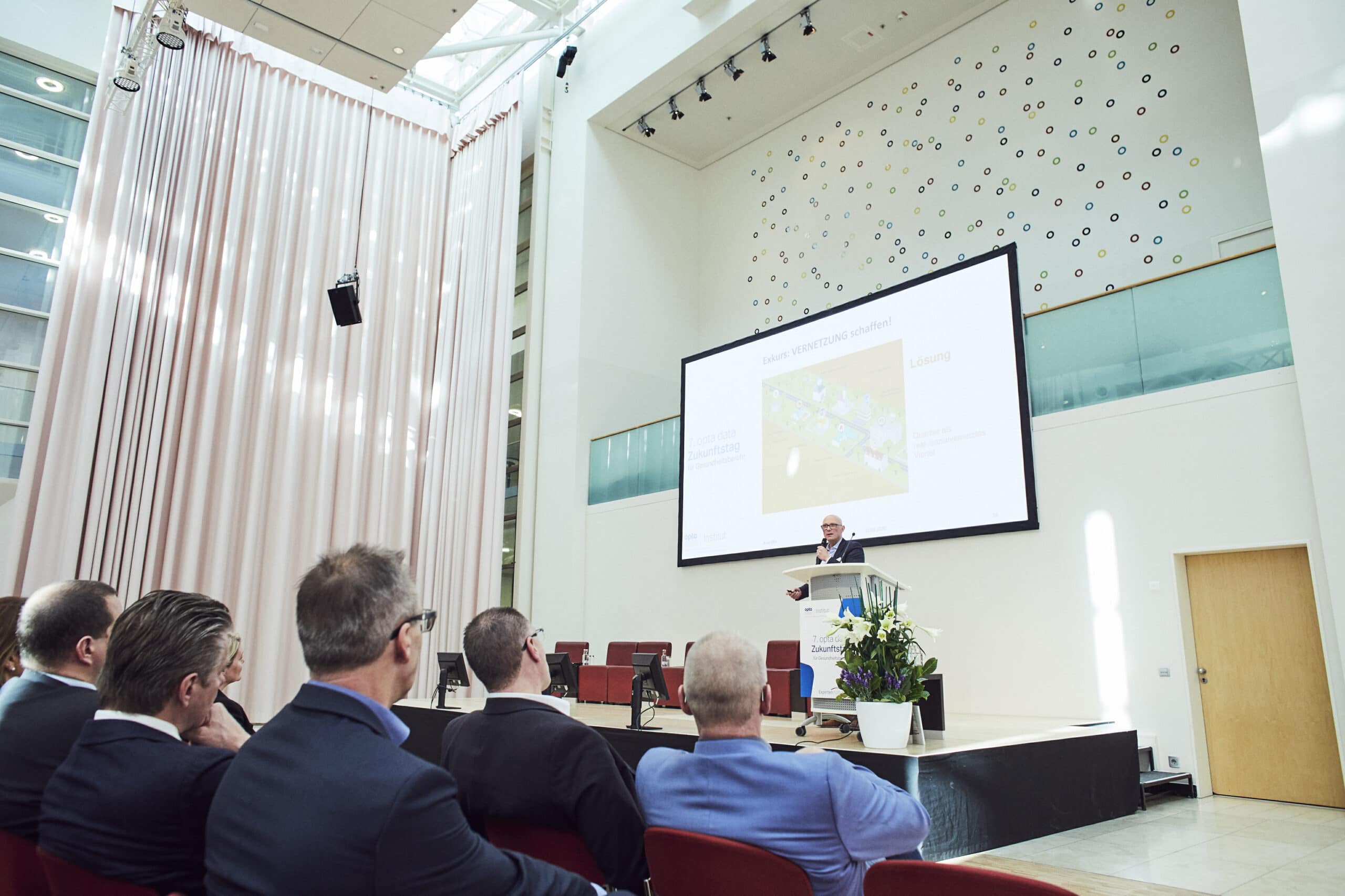 Debatin stellte in seinem Vortrag vor allem eine Hauptthese heraus: „Digitalisierung ist kein Selbstzweck“. Der gebürtige Essener unterstrich dabei, dass die Digitalisierung von den Menschen gewollt sei, aber dieser Wunsch auf eine schlechte Performance seitens der Gesundheitsbranche trifft. Dass die Politik sich deshalb damit beschäftigt, sei fast folgerichtig. In dem Health Innovation Hub ginge es daher darum, die Brücke zwischen der Politik und der „realen“ Welt zu schlagen. „Die Ministerien haben ein strukturelles Problem Input zu bekommen. Durch ihre