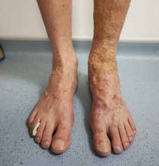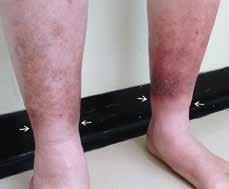 Graduierte Kompressionsstrümpfe werden als universelle Behandlungsmethode für die meisten venösen Erkrankungen verschrieben. Dazu zählen Krampfadern und refluxbedingte Hautveränderungen (einschließlich Geschwüre), Schwellungen durch venöse Stauungen (Abb. 1) sowie das durch Reflux und Obstruktion verursachte postthrombotische Syndrom 1. Graduierte Kompressionsstrümpfe sind jedoch auch ohne vorliegende Venenerkrankung zur Verringerung von Beschwerden und Ödemen beim Stehen und Sitzen indiziert 2. Sie bieten Komfort bei der Ausübung von Sport und können die Regeneration verbessern 3. Auch bei der Prävention von Hautveränderungen können sie wirksam sein (Abb. 2).