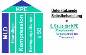 Die Lymphtherapeuten schulen die Patientinnen in unterstützender Selbstbehandlung, der nunmehr 5. Säule der KPE (Abb. 8). Verhaltenstipps zur Vermeidung eines Lymphödems oder eines Erysipels sowie einen Flyer über das „Lymphnetzwerk am iBB“ erhalten die Patientinnen mit den Entlasspapieren.