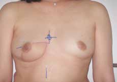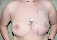 Am iBB werden in der Regel bei der brusterhaltenden Operation (BET) radiäre Schnittführungen an der Brust mit ggf. Einschwenken der Narbe in die Axilla (Abb. 1 u. 2) oder onkoplastische OP-Verfahren wie die tumoradaptierte Reduktion mit Angleichung der gesunden Brust durchgeführt (Abb. 3a u. b), um ein langfristig gutes und kosmetisch ansprechendes Ergebnis zu erzielen. Muss jedoch ein größerer Anteil des Brustgewebes entfernt werden, benötigt man zum Ausgleich z. B. körpereigenes Gewebe vom Rücken (Abb. 4) oder Bauch, oder es werden an spezialisierten Zentren mittlerweile auch Muskeln der Oberschenkel- oder Gesäßregion verwendet, z. B. Latissimus-dorsi-Plastik (LAT) (Abb. 5a u. b), TRAM-Flap, DIEP-Flap, FCI-Flap oder Grazilis-Lappenplastik.