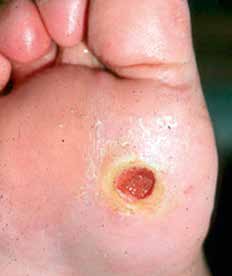 Der wesentliche Grund für den Einsatz der diabetesadaptierten Fußbettung zusammen mit Diabetesschutzschuhen ist die Versorgung nach abgeheiltem plantarem Ulkus (Risikogruppe 3) (Abb. 1).