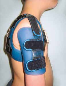 Bei der ersten Problemstellung liegt eine schlaffe Plexusparese mit fortschreitender Luxation des Humeruskopfes vor (Abb. 2). Am Oberarm besteht eine starke Muskelathrophie mit sehr weichem Gewebe; Flexion und Supination im Unterarm sind eingeschränkt. Ziel der Orthesenversorgung ist die Repositionierung des Humeruskopfes in die Gelenkposition, um so die Schulter zu stabilisieren 6. Sekundär sollen die mit der Fehlpositionierung verbundenen Schmerzen reduziert und die Nutzung der motorischen Restfunktion von Hand und Unterarm unterstützt werden. Die Repositionierung führt zu einer freien Beweglichkeit in der Sagittalebene, lässt also das Armpendel frei, entlastet somit Schultergürtel und Rücken und fördert ein natürlicheres Erscheinungsbild.