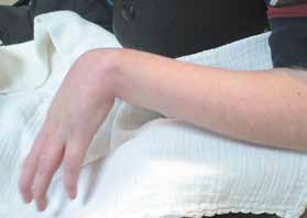 Die bilaterale Unterarm-Hand-Versorgung einer spastischen Tetraparese stellt bei aktiven Patienten hohe Anforderungen an Funktionalität, Compliance, einfache Handhabung und unbeschwertes, dauerhaftes Tragen. Die 14-jährige Patientin (Abb. 5) stellte sich mit einem auffälligen Gesamtbefund vor: An den oberen Extremitäten traten deutlich Einschränkungen in der Extension hervor, in den Handgelenken war eine ausgeprägte Tendenz in Flexion und Ulnardeviation erkennbar, jedoch beidseits auf 0 Grad manipulierbar.