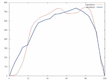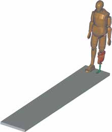 Testperson war ein links unterschenkelamputierter Patient (30 Jahre alt, männlich, 80 kg, 1,80 m). Die Gangdaten wurden mit dem optischen Trackingsystem von Qualisys erhoben. Der Gang des Probanden wurde mit acht Infrarot-Kameras (eine davon im Video-Modus) aufgezeichnet. Zuvor war jedes der zu verfolgenden Körpersegmente mit mindestens drei reflektierenden Markern versehen worden. Die von Qualisys berechneten Trajektorien wurden geglättet, um als Randbedingungen einer FE-Simulation verwendet werden zu können. Das Menschmodell kann durch Skalierung an die anthropometrischen Maße (Größe und Gewicht) des Patienten angepasst werden. Nach Übertragung der aufgenommenen Bewegungsdaten auf den Dummy wurde eine FE-Simulation des Probandengangs durchgeführt.