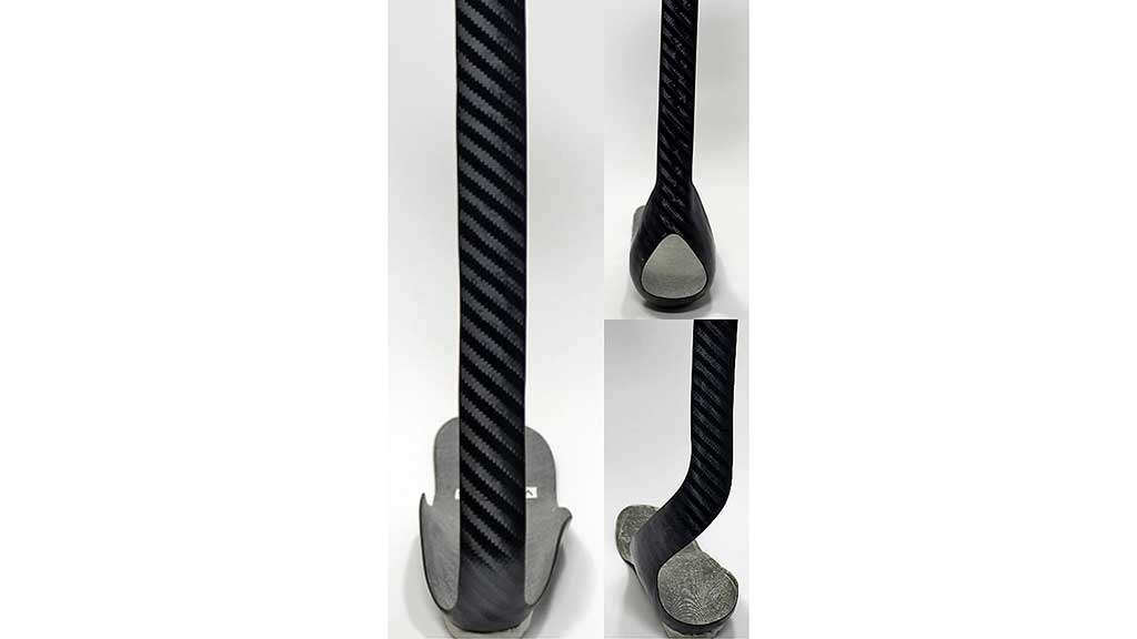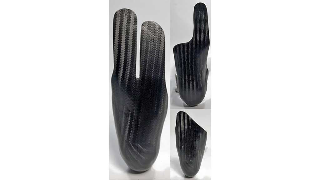 Dabei stehen verschiedene Lagetechniken bei der Anfertigung der Carbonfeder zur Verfügung. Das Carbonfasergewebe wird unter anderem bidirektional in einem 45°-Winkel, bidirektional in einem 90°-Winkel oder unidirektional in unterschiedliche Richtungen gelegt und in Verbindung mit Armierungsmaterialien kombiniert und individualisiert (Abb. 1). Hieraus ergibt sich zum einen die Flexibilität der Carbonfeder, zum anderen aber auch ihre Torsionsfähigkeit, wie sie gerade im Kleinkind- und Jugendalter häufig dringend erforderlich ist.