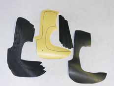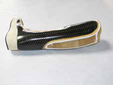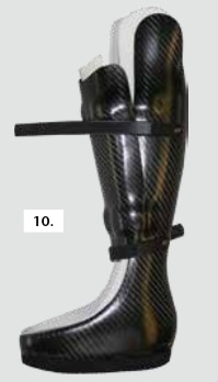 Die nachfolgende Fotostrecke (Abb. 1 bis 8) zeigt exemplarisch den prinzipiellen Arbeitsablauf für eine Unterschenkelorthese auf; die Abbildungen 9 bis 11 zeigen weitere Anwendungsbeispiele. Wie zu erkennen ist, sind auch komplexere Formen wie Schalen- oder Ganzbeinorthesen mit Gelenkpassteilen im Easypreg-Verfahren realisierbar. Erstaunlich an dieser Versorgung ist, dass sie ohne jegliche Sonderbehandlung der Eingussanker wie Umwickeln und Vernähen mit Verstärkungsfasern auskommt. Es scheint, dass die im Arbeitsablauf stattfindende Zugspannung auf die Carbonfaser enormes Potenzial hat – dies ist umso erstaunlicher, als es sich um einen reinen Formschluss handelt, da die Polyamidmatrix keine nennenswerte Adhäsion mit Metallen aufnimmt.