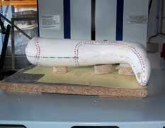 Um Frustration und Ausschuss zu vermeiden, ist es notwendig, die Modellherstellung zu überdenken. In vielen Fällen können einfache Hilfsmittel zur Lagerung mit in das Modell hineinkonstruiert werden. Eine weitere Möglichkeit besteht darin, hohl liegende Stellen mit einem Lagerbock aus Gips zu unterstützen. Im Alltag bewährt hat sich eine etwas aufwendigere, aber gut funktionierende Alternative: Von dem üblichen Gipsmodell, das bereits mit der Definitivpolsterung versehen ist, wird aus 4 mm Polyethylen ein Negativabdruck erstellt, der mit Hartschaum 400 ausgefüllt wird. Dieses Modell beinhaltet somit bereits das Volumen des Polsters und ist widerstandsfähig genug, um die Pressung mit Easypreg auszuhalten. Das bedeutet zwar auf den ersten Blick einen höheren Aufwand, aber man riskiert nicht, das Modell oder das Polster zu beschädigen. Bei Reparaturen oder Folgeversorgungen kann man den Mehraufwand an Zeit wieder einsparen. In der Summe des Aufwands ist dieser Prozess wirtschaftlich noch vertretbar. Bei sorgfältiger Auswahl der Polstermaterialien ist es auch möglich, Easypreg direkt über dem Definitivpolster zu verarbeiten. Bewährt hat sich hierbei Tepefom 20.
