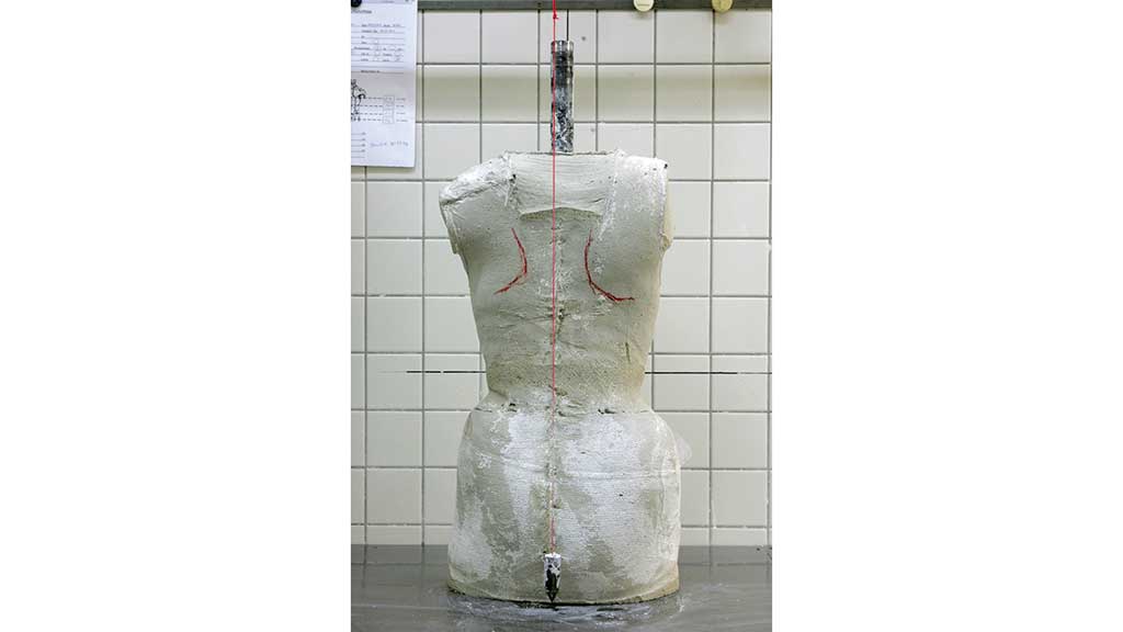 Die Anprobe erfolgt mit ausreichend Zeit und Ruhe nach dem 4‑Augen-Prinzip, im Bedarfsfall mit einer weiblichen Kollegin. Hier werden nun die Gesamtpassform, der korrekte Sitz der Korrekturzonen sowie die erforderlichen Expansionsräume kontrolliert. Der Lotstand von C7 zur Rima ani sollte bei der Anprobe erreicht werden. Es ist für die Patienten wichtig zu erfahren und zu sehen, dass tatsächlich nur so viel Korsettmaterial wie notwendig verbaut wird. Ausreichend Zeit für Erklärungen ist schon bei der Anprobe von großer Wichtigkeit – nur so stößt man nicht auf zu große Ablehnung gegen die Orthese. Die Patienten sollten die notwendigen Informationen zur Korsettversorgung möglichst entsprechend dem jeweiligen Versorgungsabschnitt erhalten. Nach der nun folgenden Fertigstellung der Orthese wird ein Termin zur Abgabe des Korsetts vereinbart, wiederum mit ausreichend Zeit. Das abgabefertige Korsett wird von den versorgenden Technikern auf Passgenauigkeit und korrekten Sitz kontrolliert und anschließend dem Patienten und seinen Eltern in allen Details und Funktionen erklärt.