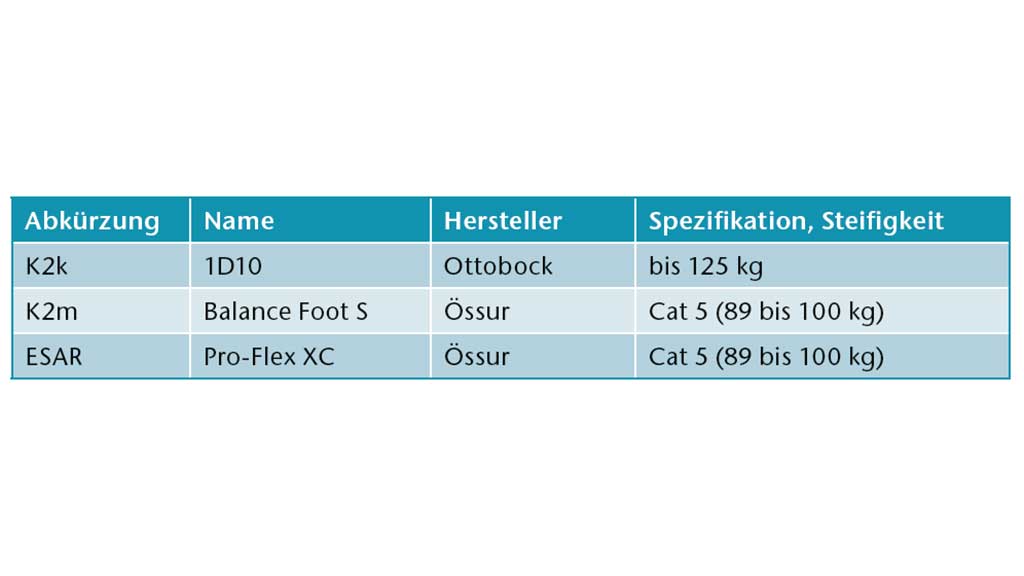 Im weiteren Verlauf wurden nach dem gleichen Protokoll die weiteren Prothesenfüße untersucht (Abb. 3).