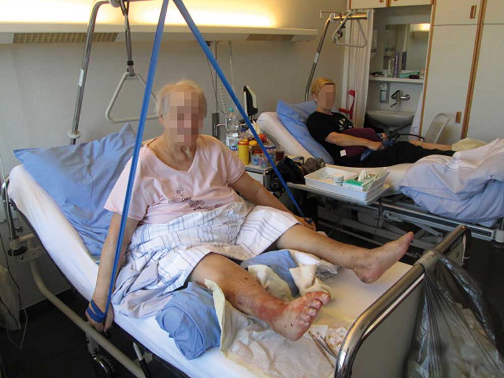 Während der Rehabilitation wurde im Rahmen der Behandlung die Wundversorgung nach den Standards der ICW (Initiative Chronische Wunden) fortgeführt. Barrierefreie Mobilität war im Rahmen des Frührehabilitationsprogrammes im Hospital gewährt. Die maximale Behandlungszeit betrug 54 Tage, im Durchschnitt dauerte sie ca. 2 Wochen. Nach Abschluss der Rehabilitation wurde der Patient vom Rehabilitationsarzt im günstigsten Fall alle 6 Monate zur Hilfsmittelversorgung in der KV-Ambulanz begutachtet. Im Folgenden wird der typische Verlauf des Frührehabilitationsprogramms in Rheine geschildert. Dabei wird auf die Ergebnisse bezüglich der genannten Patientenkohorte aus den Jahren 2014/2015 zurückgegriffen.
